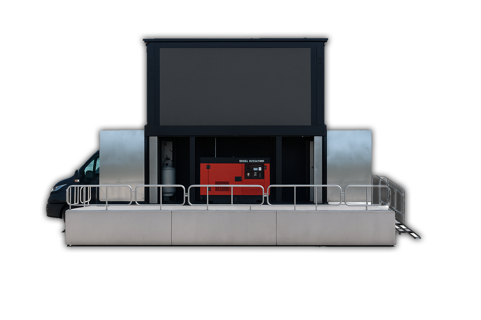 3 LED SCREENS 3,5M x 1,7M SIDE SCREENS 1,6M x 1,6M BACK SCREEN 500W SURROUND SOUND SYSTEM
